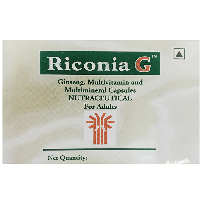Riconia G Capsule is a nutritional supplement containing various fortified micronutrients and ginseng extract as active ingredients that are used in adult men to prevent deficiency of vitamins and minerals, to improve physical performance and vitality, and for general well-being.