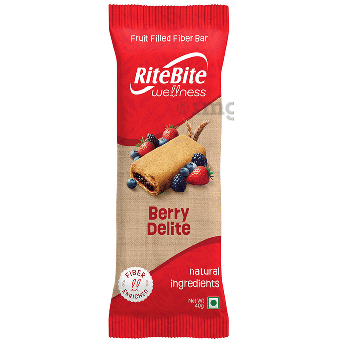 RiteBite Wellness Bar Berry Delight is a wholesome and delicious snack that can combine the tangy sweetness of mixed berries with the goodness of dietary fibre. Designed for individuals seeking a healthier snacking option, this bar may provide energy and satiety while supporting digestive health. Made with real mixed berry jam and whole wheat flour, it offers natural flavours and essential nutrients. With no trans fats or maida, this bar may be your ideal partner for guilt-free indulgence, whether you're on the go or looking for a quick pick-me-up during a busy day.