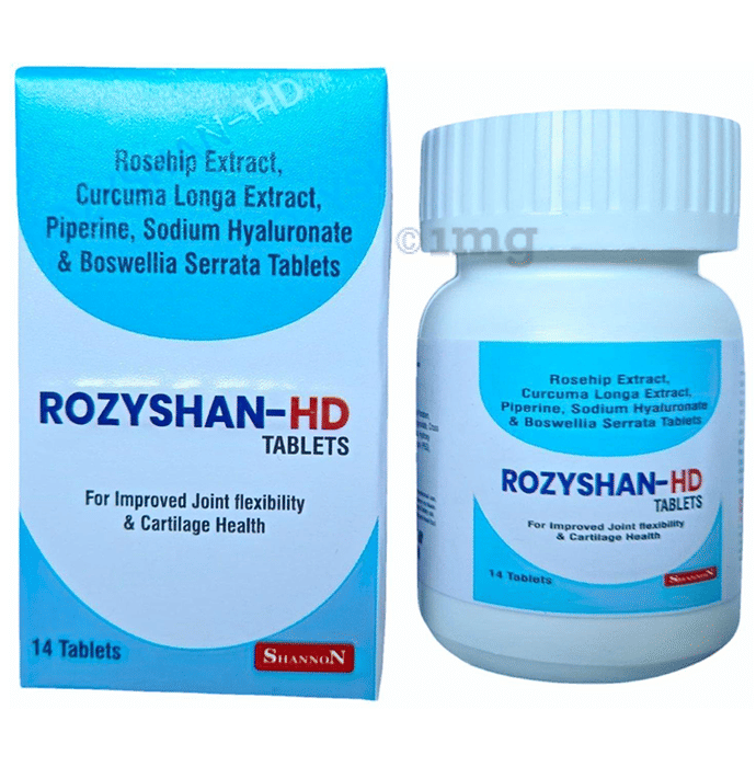 Rozyshan HD Tablet is a dietary supplement, primarily used to manage joint pain. It contains beneficial ingredients such as rosehip and curcuma longa extract which can help relieve joint pain, relieve inflammation and helps improve joint flexibility.