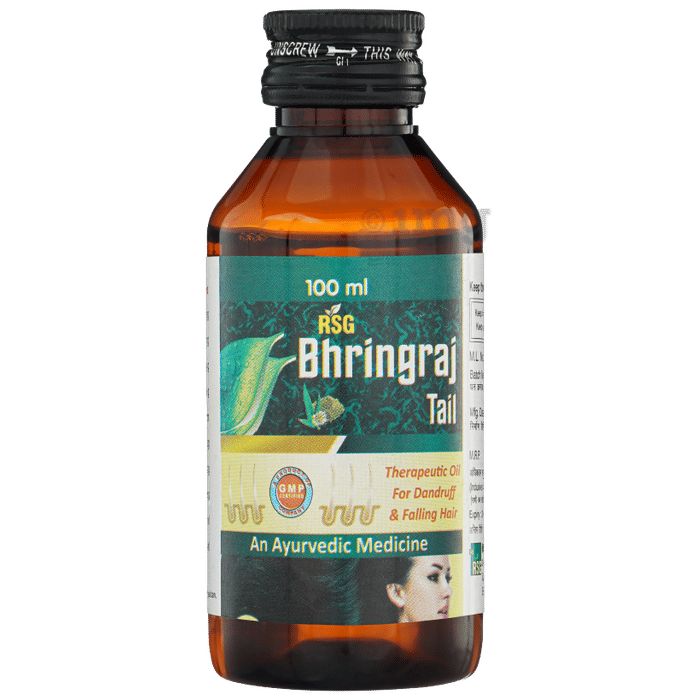 RSG Bhringraj Tail is a therapeutic Ayurvedic oil designed to help address common hair concerns such as dandruff and hair fall. Crafted with a blend of potent herbal ingredients, this oil can help to nourish the scalp, strengthen hair roots, and promote overall hair health. Its unique composition, enriched with Bhringraj, Nagkesar, and Haridra, provides a natural remedy for maintaining healthy, lustrous hair. Ideal for daily scalp care, it can help to restore vitality to dull and damaged hair, leaving it soft, shiny, and manageable.
