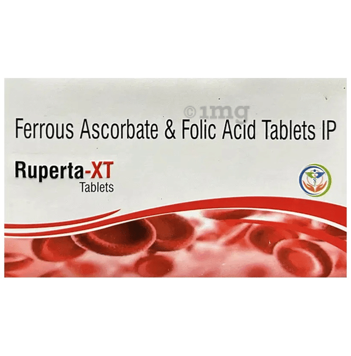 Ruperta XT Tablet will help you in the rapid restoration of iron in your body. Ferrrous ascorbate and folic acid are most suited iron for easy assimilation and essential for RBC maturation respectively. It contains Ferrous Ascorbate and Folic Acid, two essential nutrients known for their roles in iron assimilation and red blood cell (RBC) maturation, respectively.