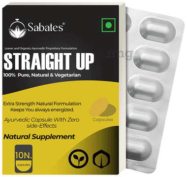 Sabates Straight Up Capsule is an extra strength natural supplement that may help support daily energy levels. This Ayurvedic capsule is crafted with pure, natural, and vegetarian ingredients, making it a safe and effective option for maintaining vitality throughout the day. This supplement offers a blend of protein and herbal ingredients, adhering to Ayurvedic principles. Ideal for individuals looking to stay energised and active, Straight Up is designed for those seeking a natural way to support physical endurance.