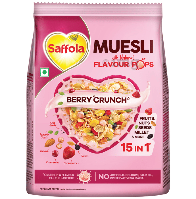 Saffola Muesli with Natural Flavour Pops 15 in 1 Berry Crush