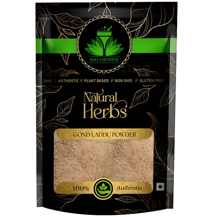 Sai Herbs Gond Laddu Powder is a finely powdered edible gum that may support seasonal energy requirements and satiety when used in traditional sweets. It may also assist in digestive comfort when paired with warming spices and fats. It can be roasted and mixed into flour, jaggery, dry fruits, or ghee to make nourishing homemade laddus and sweets.