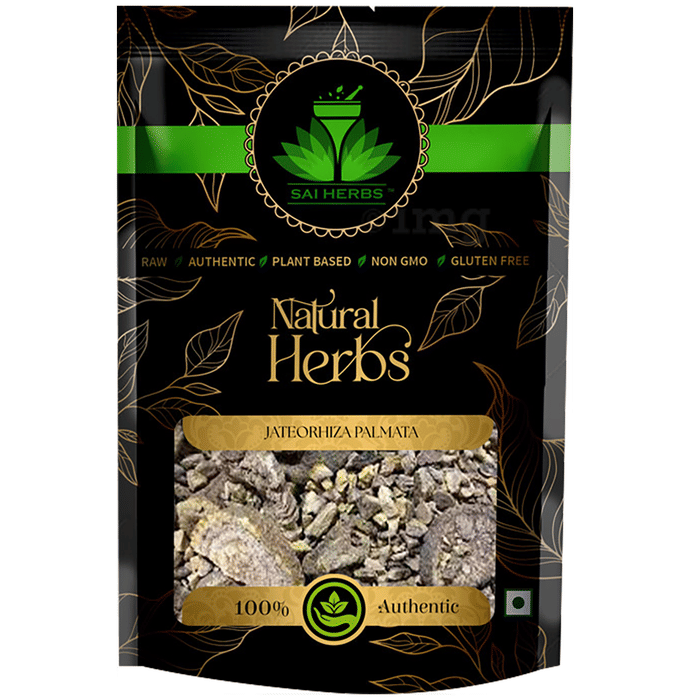 SAI HERBS Jateorhiza Palmata (100 Grams) is a plant-based supplement made from dried Jateorhiza palmata. Commonly included in wellness practices, it may support overall health and internal balance. Best used under the advice of a healthcare professional as part of a wellness routine. Suitable for mixing with water or other preparations, depending on individual usage guidance.