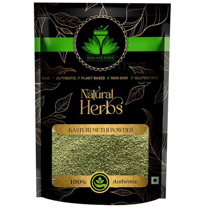 Sai Herbs Kasuri Methi Powder is a pure, plant-based herbal product crafted from dried and finely ground fenugreek leaves (Kasturi Methi). Known for its versatility in both internal and external Ayurvedic practices, this powder may be incorporated into food, herbal hair care, or skin applications. With its raw, non-GMO, and gluten-free formulation, it caters to individuals seeking natural solutions for wellness and culinary enrichment. Kasturi Methi Powder is authentic, processed without any additives, ensuring that users receive the natural essence of the herb in a convenient powdered form.