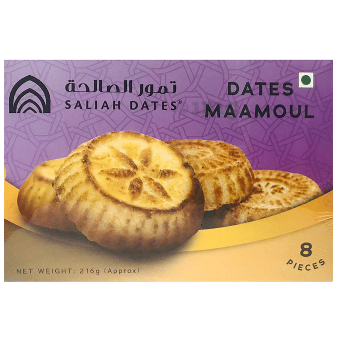 Saliah Dates Maamoul Cookie is a date-filled cookie. It is made with dates paste, fine semolina, butter, sugar, and wheat flour. These are often made to celebrate eid, the end of Ramadan.