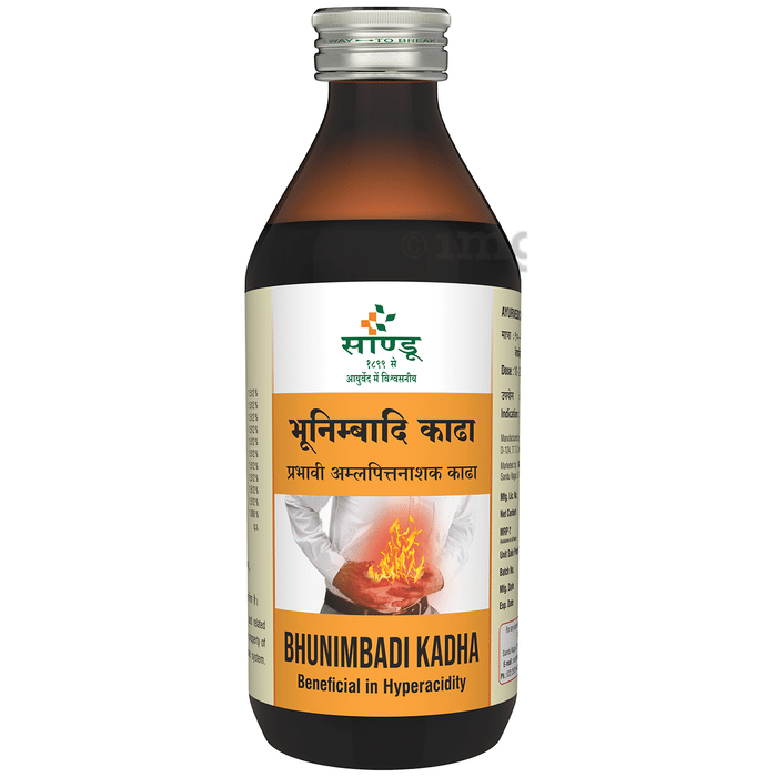 Sandu Bhunimbadi Kadha is a classical Ayurvedic remedy for hyperacidity and related problems. It relieves hyperacidity by neutralizing excessive gastric acids in the stomach. It provides relief from pain and burning sensation in the stomach. It is effective in indigestion, belching, nausea, loss of appetite, altered taste and other symptoms of hyperacidity.