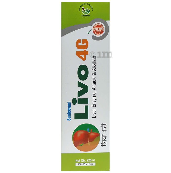 Sanjeevani Livo 4G Syrup is a comprehensive Ayurvedic tonic crafted to help promote liver health, support digestive function and maintain pH balance. This natural blend combines potent herbs like Bhringraj, Arjun Chall, Ashwagandha, and Sarponkha to help provide holistic support for liver detoxification, enzyme production, and digestive wellness. It also serves as an alkalizer which may help maintain optimal pH levels for overall health.