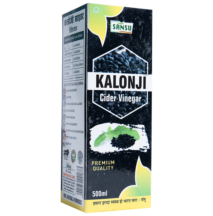 Sansu Kalonji Cider Vinegar is a type of vinegar made from black seeds, also known as Kalonji in Hindi.it is a herbal product and contains no chemicals or preservatives. It is believed to be good for gut health, rich in dietary fibre, and contains vital nutrients and antioxidants. It may also offer benefits for skin allergies, sunburn, and weight loss.