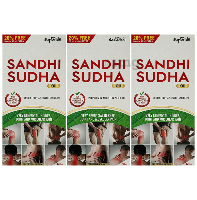 - Take 5 ml of Sandhi Sudha Oil on your palm and apply gently over the knees, back, shoulders, or other painful joints and muscles