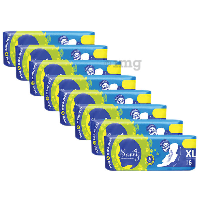 Designed for menstrual protection, Savvy XL Sanitary Napkins are suitable for individuals with regular to heavy flow, ensuring comfort and dryness.