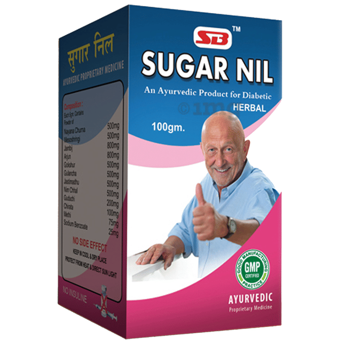SB Sugar Nil is an ayurvedic product that contains herbal ingredients like, nayana churna, jambij, arjun, gokshur, gulancha, jastimadhu, guduchi and methi.