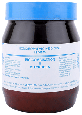 SBL Bio-Combination 8 Tablet is a homoeopathic tablet useful for loose, watery and more frequent bowel movements, commonly known as diarrhoea. The tablet helps relieve the continuous flow of motion and replenishes lost minerals and electrolytes. It can also help manage associated symptoms like nausea, vomiting, abdominal pain and weight loss.