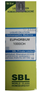 SBL Euphorbium Dilution is a homeopathic remedy used to support respiratory and skin comfort. It assists in easing sensations in the chest and supports breathing. It may also help soothe mucous membranes and relieve discomfort associated with hay fever such as runny nose and sneezing. It is indicated for skin irritations including ulcers, blisters and insect bites. Additionally, it helps manage sensations such as burning pain in the bones and weakness in limbs.