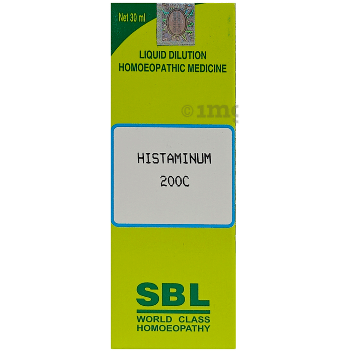 SBL Histaminum Dilution is effective against histamine and allergic reactions. It is useful in histamine allergic reactions, itching, congestion, bronchial agitation, swelling, and hives.