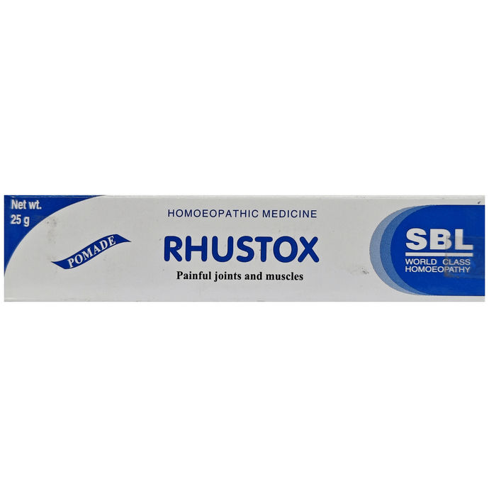 SBL Rhustox Ointment is a formula that acts as an anti-inflammatory ointment. It helps with joint pain, sciatic pain, muscular pain, stiff joints, backache and stiffness on the nape and neck.
