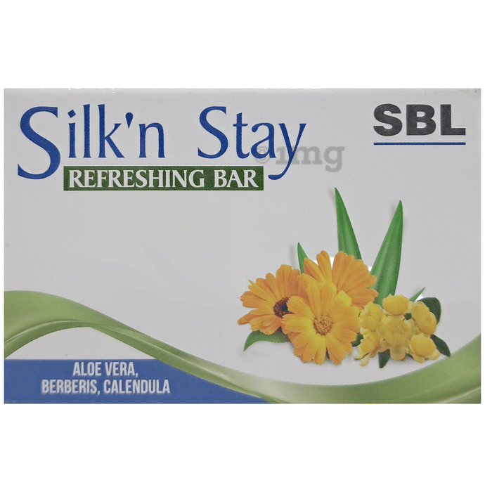 SBL Silk N Stay Refreshing Bar Aloe vera, Berberis & Calendula has the goodness of Calendula and Berberis with soothing fragrances. In addition to having the extracts of both Berberis and Calendula, this soap also contains aloe vera which has strong moisturising properties which help prevent the skin from drying after washing.