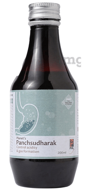 Senna leaf (Cassia angustifolia) Powder– 50%, Kala Namak (Unaqua sodium chloride) Powder – 10%, Ajwain (Trachyspermum ammi) Powder – 10%, Haritaki (Terminalia chebula) Powder – 6.5%, Amla (Emblica officinalis) Powder– 2.8%, Bahera (Terminalia bellirica) Powder– 2.8%, Sarjkashar (Sodium bicarbonate) Powder – 4.8%, Saindha Namak (Sodium chloridum) Powder – 3.83%, Saunf (Foeniculum vulgare) Powder– 1.795%, Sonth (Zingiber officinale) Powder – 3.5%, Kala Dana (Ipomoea hederacea) Powder– 2.6%, Castor Oil (Ricinus communis) – 0.32%, Hing (Ferula narthex) Powder– 0.005%, Jeera (Cuminum cyminum) Powder – 1%, DM Water – q.s., Sodium benzoate – 0.1%, PVPK-30 – 2%