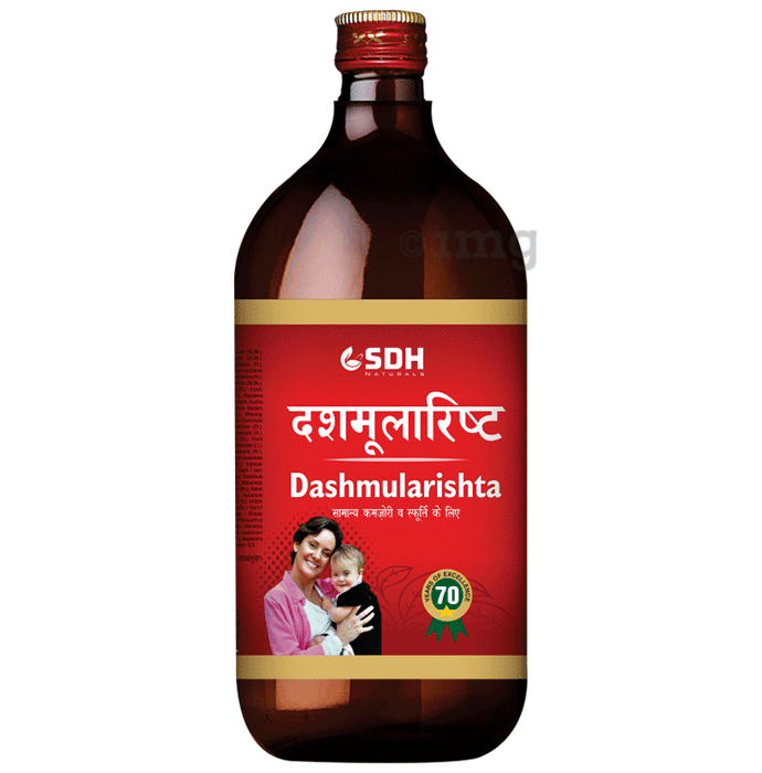 SDH Naturals Dashmularishta: SDH Naturals Dashmularishta is an Ayurvedic fermented formulation made with a combination of powerful root herbs and a blend of over 40 natural ingredients. It is designed to serve as a potential restorative tonic for both physical and mental wellness. Dashmularishta can help support the body’s strength, stamina, and immune capacity, while also contributing to internal cleansing and healthy skin tone. Its antioxidant-rich base can help manage fatigue, general weakness, and stress-related weariness. This formulation may be useful for those recovering from illness, managing post-pregnancy stress, or undergoing lifestyle-induced exhaustion. Prepared through natural fermentation, Dashmularishta can help support digestion, immune readiness, vitality, and internal tissue balance when consumed regularly under guidance. It is suitable for adults seeking a balanced Ayurvedic tonic for daily rejuvenation. Key Ingredients: Refer to the label Key Benefits:
