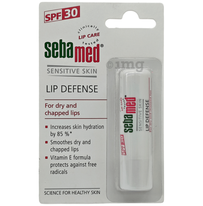 Sebamed Lip Defense with SPF 30 helps relieve dry lips and protect them from harmful elements like UV damage and wind. This botanical oil-based lip defence helps to heal and soothe chapped lips. The combination of vitamin E and jojoba oil helps soothe dry lips. Regular use helps hydrate the lips and protect against sunburn.