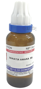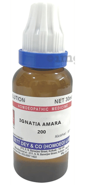 Sett Dey Ignatia Amara Dilution is a homoeopathic medicine indicated for hysterical and nervous affections with extreme emotional disturbances. It can help ease the effects of grief and worry.