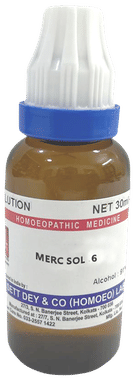 Sett Dey Merc Sol Dilution is useful for infections of mouth, throat and ear and dental infections. It is useful for complaints associated with offensive discharges like bad breath, pus, sweat, smelly urine and stool. It is beneficial for sore throat and inflamed tonsils. It is useful for symptoms like ulcers in the mouth that are shallow and painful with a bad taste in the mouth.