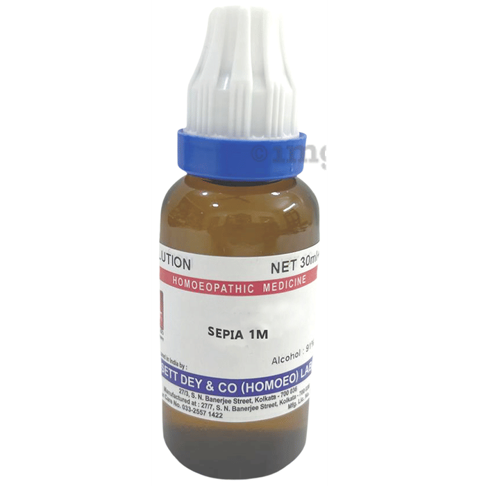 Sett Dey Sepia Dilution is a remedy that has its main action on the female sexual organs, portal system and liver. It is indicated in cases of menstrual disorders and menopausal troubles. It is also effectively used for chronic liver afflictions and venous congestion. It is also a good remedy for depression and mental irritability. It is indicated in prolapse of uterus and painful condition. It is also used for skin diseases like herpes, ringworm and urticarial rashes.