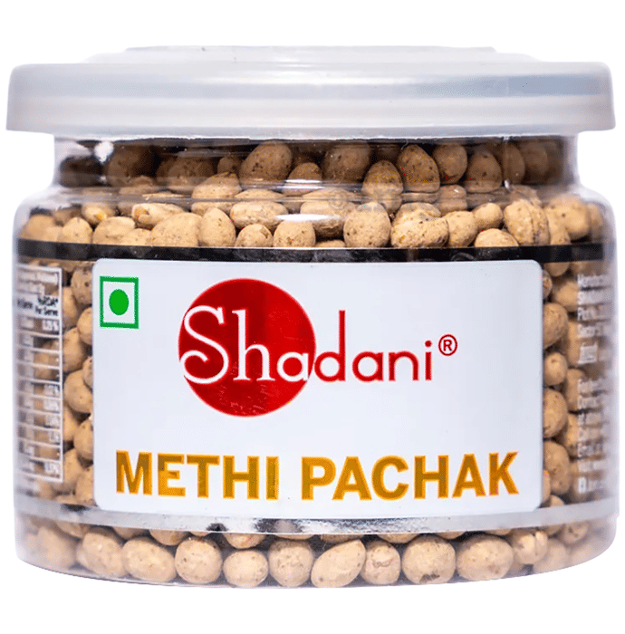 Shadani Methi Pachak is a flavourful digestive aid that combines the richness of fenugreek seeds (Methi) with a blend of spices and condiments. The unique composition includes dry mango powder, cumin, black salt, and black pepper, offering a balanced sweet, tangy, and mildly spicy taste. Fenugreek may assist in post-meal digestion support, while the added spices contribute to a refreshing and aromatic experience. This handy pachak can be consumed as part of a daily routine or after meals for a chatpata indulgence.