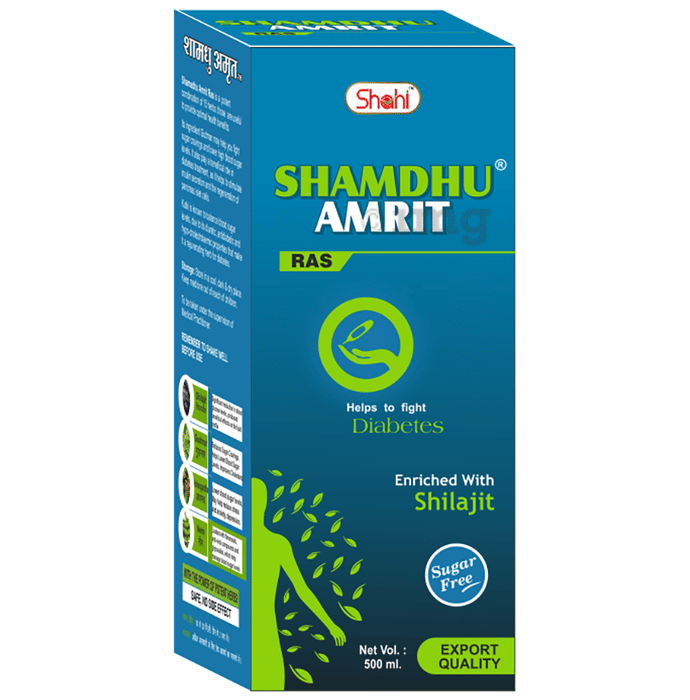 Shahi Shamdhu Amrit Ras Sugar Free is formulated with ayurvedic herbs and is a rich source of antioxidants, vitamins, and minerals.