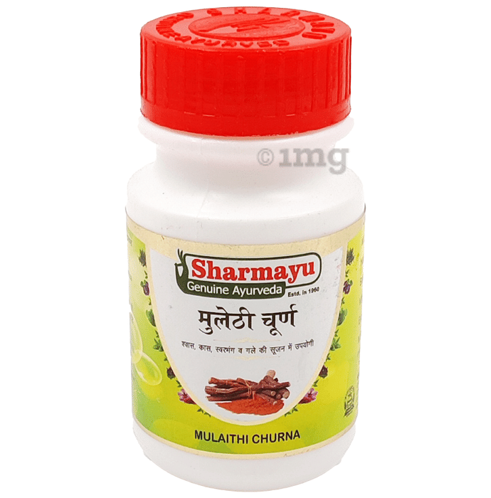 Sharmayu Mulaithi Churna Sharmayu Mulaithi Churna is quite helpful in supporting digestion and may help maintain stomach comfort. Key Ingredients: Mulethi Key Benefits: