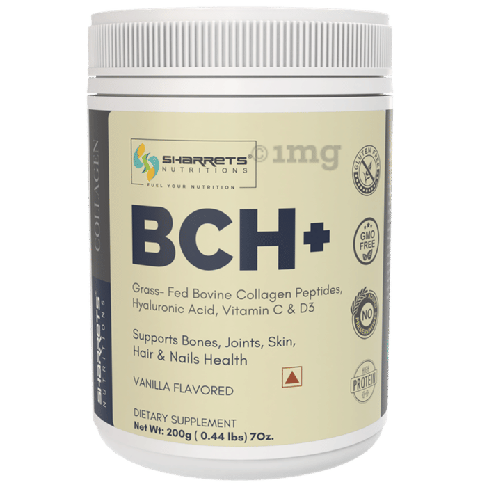 Sharrets BCH Bovine Collagen Powder Vanilla is a nutritional supplement made of all-natural collagen protein powder, sourced from pasture-raised, grass-fed cattle raised without hormones or antibiotics.