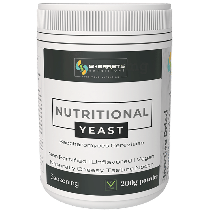 Sharrets Powder Nutritional Yeast contains unfortified nutritional yeast produced by fermentation of cane molasses (Saccharomyces cerevisiae). The yeast is processed and then dried. It contains naturally occurring nutrition to support brain, skin, hair, and nail health.