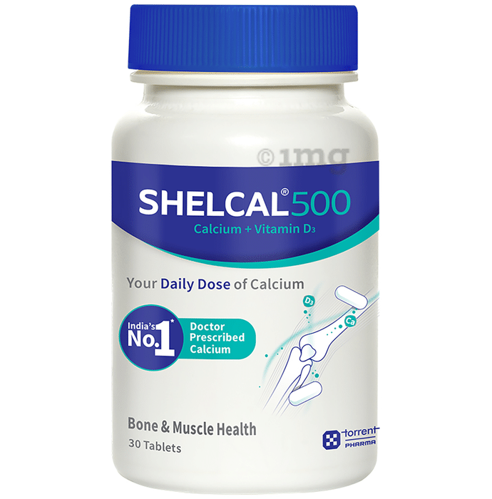 Shelcal 500 Calcium+Vitamin D3 Tablet is a dietary supplement formulated for adults to help support optimal bone, joint, and muscle health. With elemental calcium (sourced from natural powdered oyster shells) and vitamin D3, it can help maintain strong bones, support healthy teeth, and ensure calcium absorption. The combination can support improved bioavailability, making Shelcal 500 an ideal option for individuals who may not get sufficient calcium and vitamin D from their diets.