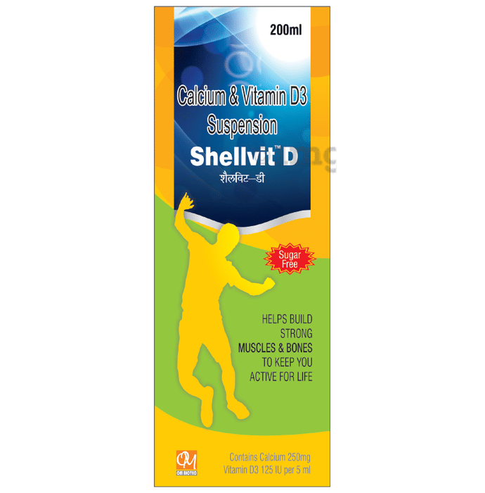 Shellvit D Oral Suspension Sugar-Free is a vitamin supplement containing Cholecalciferol (Vitamin D3) to help manage Vitamin D deficiency and aid the body in absorbing calcium and phosphorous found in food and supplements. Apart from supporting healthy bones and teeth, the syrups Vitamin D content supports cell function and aids in calcium absorption.