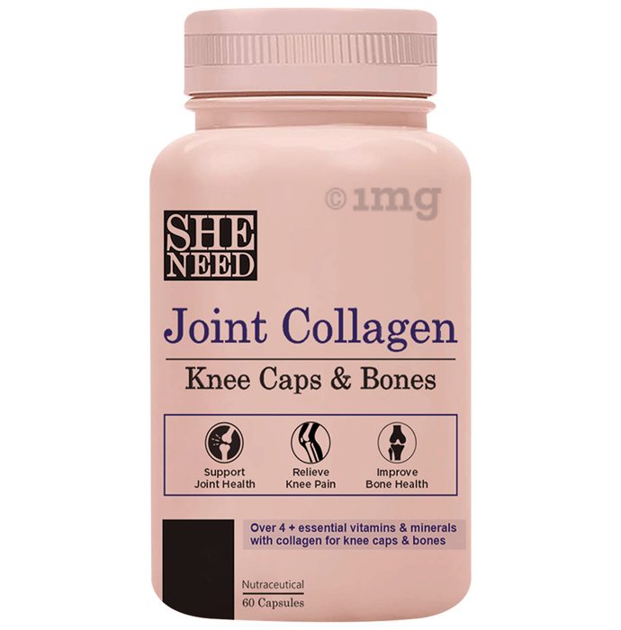 SheNeed Joint Collagen Knee Caps & Bones Capsule is a dietary supplement that helps enhance your overall health. The composition assists in assuaging joint and muscle pain. It can help deal with discomfort and improve mobility
