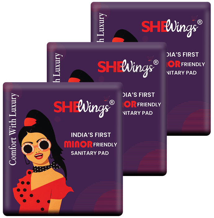 SheWings Minor Friendly Sanitary Pads are specially designed for young menstruators who require soft, safe, and effective period protection. These rash-free sanitary pads for teens are made with a 100% viscose top sheet, offering a gentle, irritation-free experience for sensitive skin. With a XXL length of 315mm, the pad provides enhanced coverage for both day and night use. Its ultra- thin design ensures a lightweight feel without compromising on absorbency. Thanks to ANION chip technology, these pads offer rapid absorption and long-lasting dryness. Each pad is packed with a biodegradable disposable pouch, ensuring safe, hygienic, and eco-friendly disposal. Free from plastic, harsh chemicals, and animal testing, these pads are vegan and cruelty-free, making them a responsible choice for both your body and the planet.