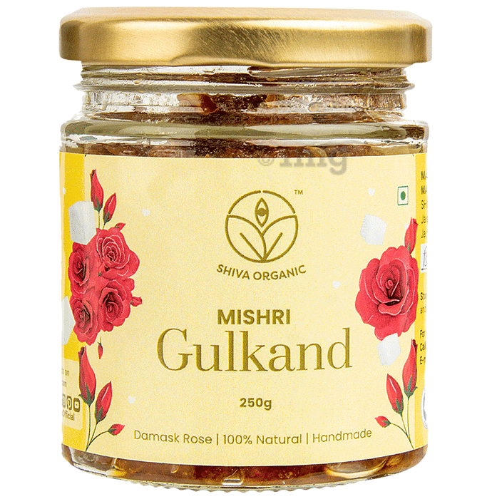 Shiva Organic Gulkand Mishri is an Ayurvedic preparation crafted from Desi Damask rose petals and naturally crystallized Desi Mishri (unrefined sugar). With a rich aroma, cooling properties, and delicious taste, this herbal blend is a natural mouth freshener as well as a wellness-supporting supplement. Gulkand Mishri may support digestive comfort, help maintain oral freshness, and aid overall vitality, especially in women’s health. Ideal for daily use, it offers a natural way to manage internal heat, support gut balance, and sweeten life.