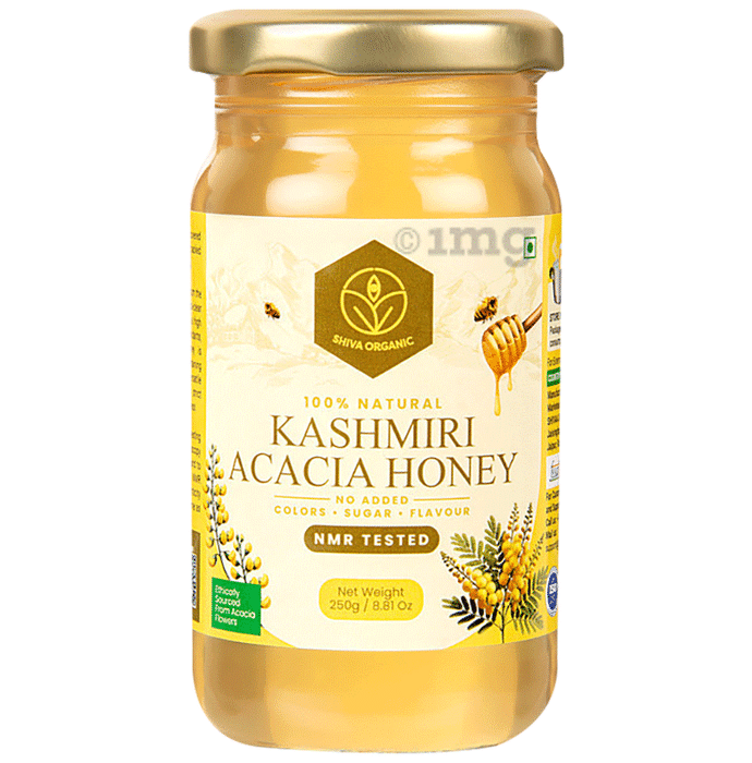Shiva Organic Kashmiri Acacia Honey is a raw and unprocessed honey sourced from the valleys of Kashmir. Derived from the nectar of the Acacia tree blossoms, which bloom briefly during May, this honey has a light color, mild floral aroma, and sweet taste. Free from added sugars, colors, or artificial flavors, this honey can be a versatile and wholesome addition to the daily wellness routine. Ideal for sweetening beverages, topping desserts, or simply consuming directly, it delivers a natural supply of energy and wellness.