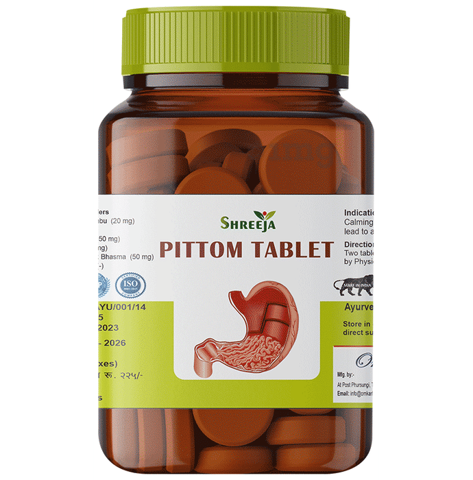 Shreeja Pittom Tablet This pittom tablet is a synergistic combination of potent herbs that work at a fundamental level by balancing the pitta dosha to regulate indigestion.