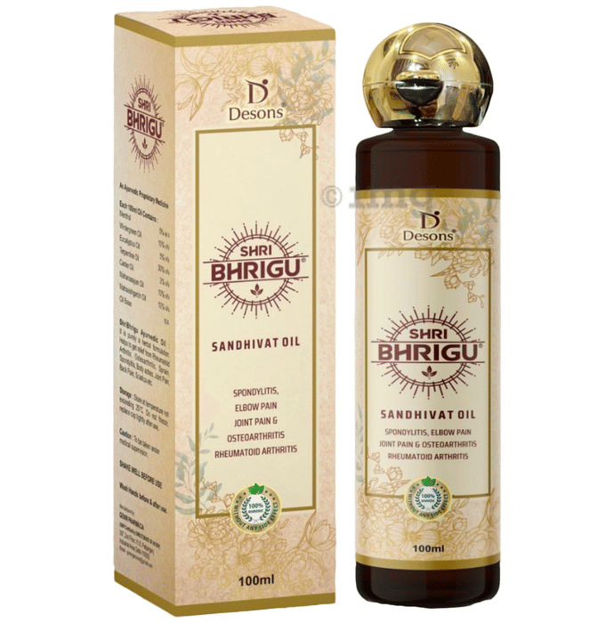 Shribhrigu Sandhivat Oil is beneficial for joint pain, osteoarthritis, elbow pain and spondylitis. It has no side effects. It has 29 essential herbs.