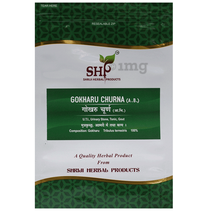 Shriji Herbal Products Churna Gokhru is a traditional herbal supplement used in Ayurvedic practices. Gokhru is known for supporting urinary tract health and general wellness. It is traditionally used to support kidney function and promote overall vitality.