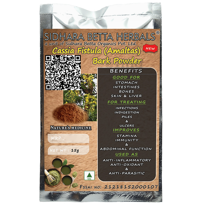 Sidhara Betta Herbals Cassia Fistula Amaltas Bark Powder is a natural herbal supplement crafted from the potent extracts of cassia fistula, commonly known as amaltas bark. Regular consumption along with physical activity can help in managing various health-related concerns.