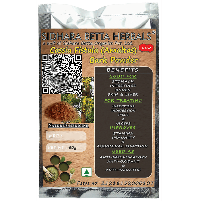 Sidhara Betta Herbals Cassia Fistula Amaltas Bark Powder is a natural herbal supplement crafted from the potent extracts of cassia fistula, commonly known as amaltas bark. Regular consumption along with physical activity can help in managing various health-related concerns.