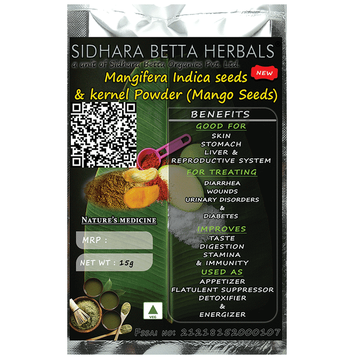 Sidhara Betta Herbals Mangifera Indica Seeds and Kernel Powder (Mango Seeds) is made from natural elements mainly consumed for controlling high blood sugar level. It is good for diabetic individuals. It caters to minor reproductive health. It is organic and devoid of toxins.