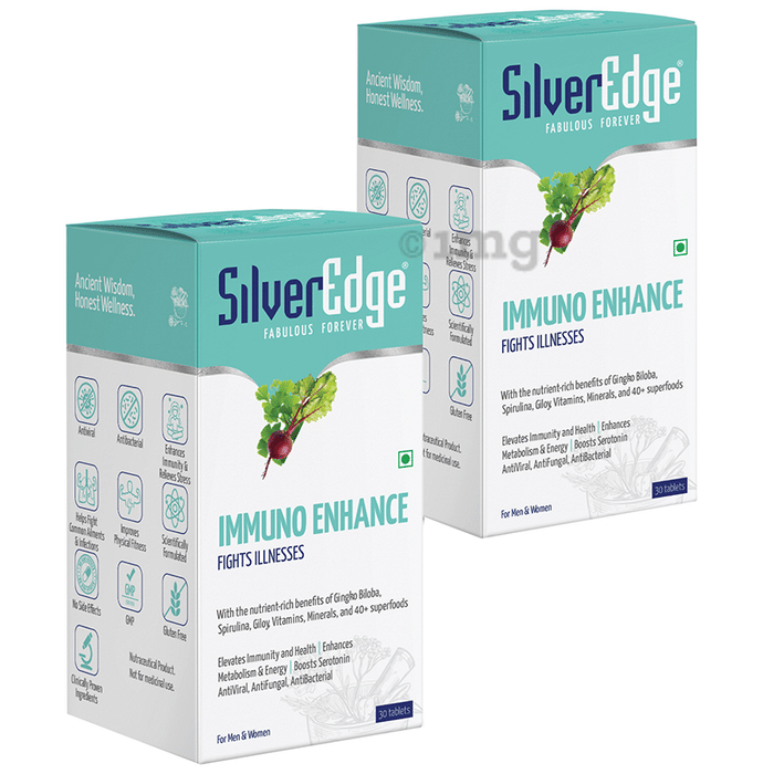 SilverEdge Immuno Enhance Tablet is specially crafted for you because immune response decreases by age and compromised immunity causes illness and infection. Hectic lifestyle combined with poor nutrition affects immunity. It is packed with anti viral, antibacterial and antifungal ingredients to help boost your immunity.