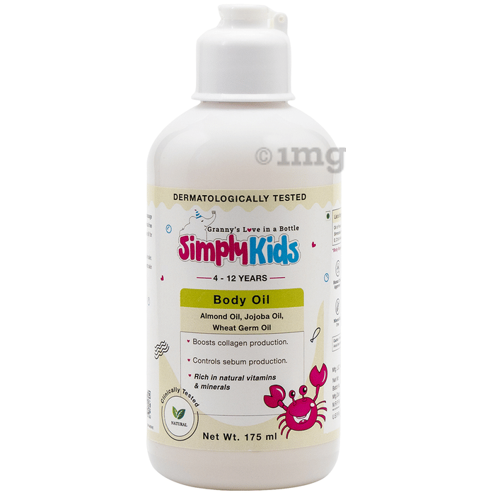 Simply Kids Body Oil is a dermatologically tested formulation designed for children between 4-12 years. It is enriched with Almond Oil, Jojoba Oil, and Wheat Germ Oil, which help provide deep hydration, support skin elasticity, and maintain a balanced skin barrier. The nourishing blend of natural oils absorbs easily, leaving the skin soft and moisturised without a greasy residue. This body oil is vegan, cruelty-free, and free from harmful chemicals such as parabens, sulfates, silicones, phthalates, alcohol, dyes, and mineral oils.