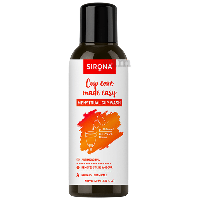 Sirona Hygienic Menstrual Cup Wash is a safe and hygienic menstrual cup washing liquid that removes the odour and prevents irritation and rashes. Washing a menstrual cup can be a difficult and tedious task when you don't have the right equipment for it. It also jeopardizes the risk of infections post washing. To fill those needs of women, Sirona has developed a menstrual cup after wash that contains no harsh chemicals.