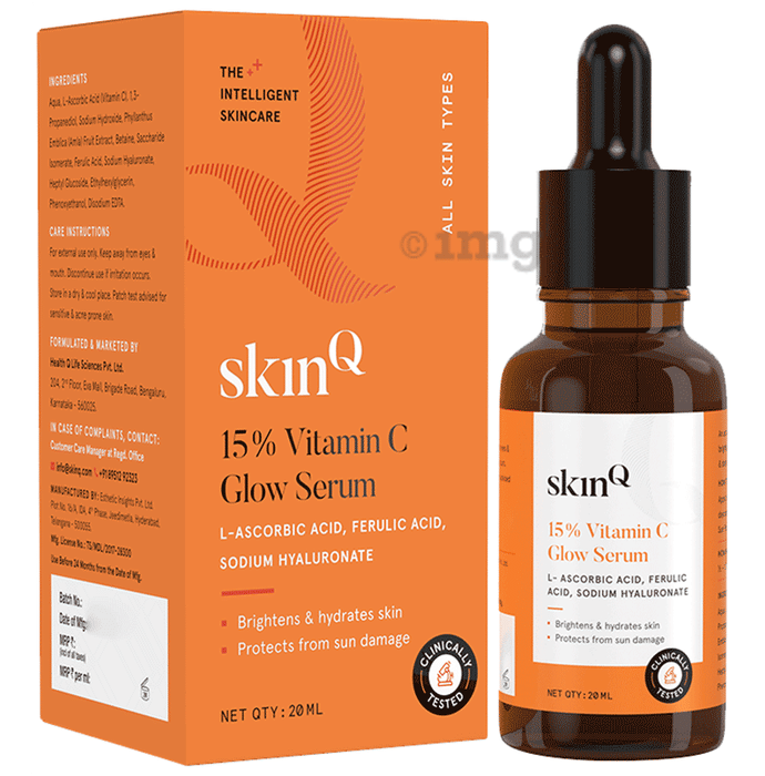 - Why choose SkinQ?: This vitamin C face serum contains 15% L-ascorbic acid, the purest form of vitamin C which helps even the skin tone, lighten pigment patches, protect from sun damage, and reduce pigmentation