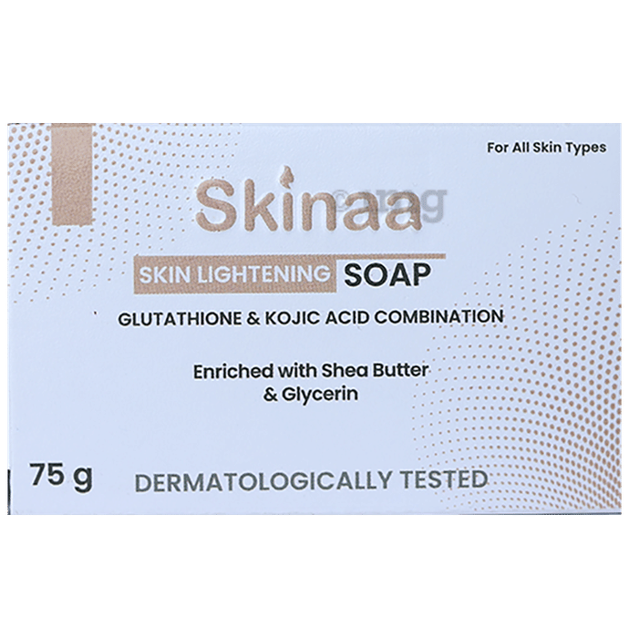 Skinaa Skin Lightening Soap Introducing the secret to radiant, even-toned skin with Skinaa Skin Lightening Soap. The innovative formula combines the nourishing properties of Shea Butter and Arbutin, all packed into a convenient 75-gram bar. Say goodbye to dullness and hello to a brighter, more luminous complexion. The main ingredients present in it are to nourish your body and skin and to keep it smooth and lightened in appearance. Enriched with Shea Butter, this soap provides deep moisturisation to keep your skin soft, smooth, and hydrated. Arbutin, a natural skin brightener, works to enhance the skins luminosity, promoting a more youthful and radiant complexion. Experience the transformational power of Skinaa Skin Lightening Soap and reveal your skins true radiance. Unlock the path to luminous skin with Skinaa Skin Lightening Soap and step confidently into a brighter future. Order now and witness the radiant results for yourself!